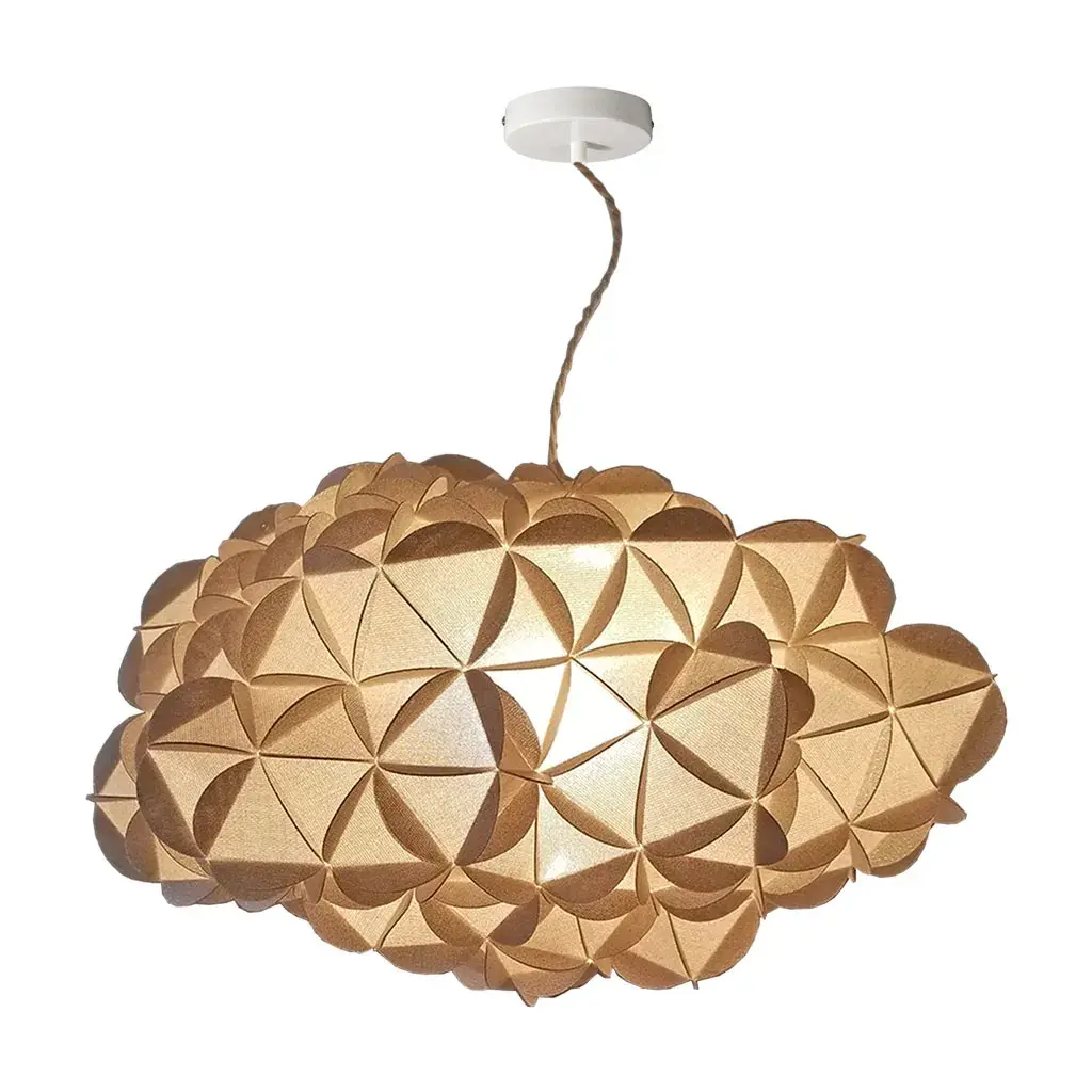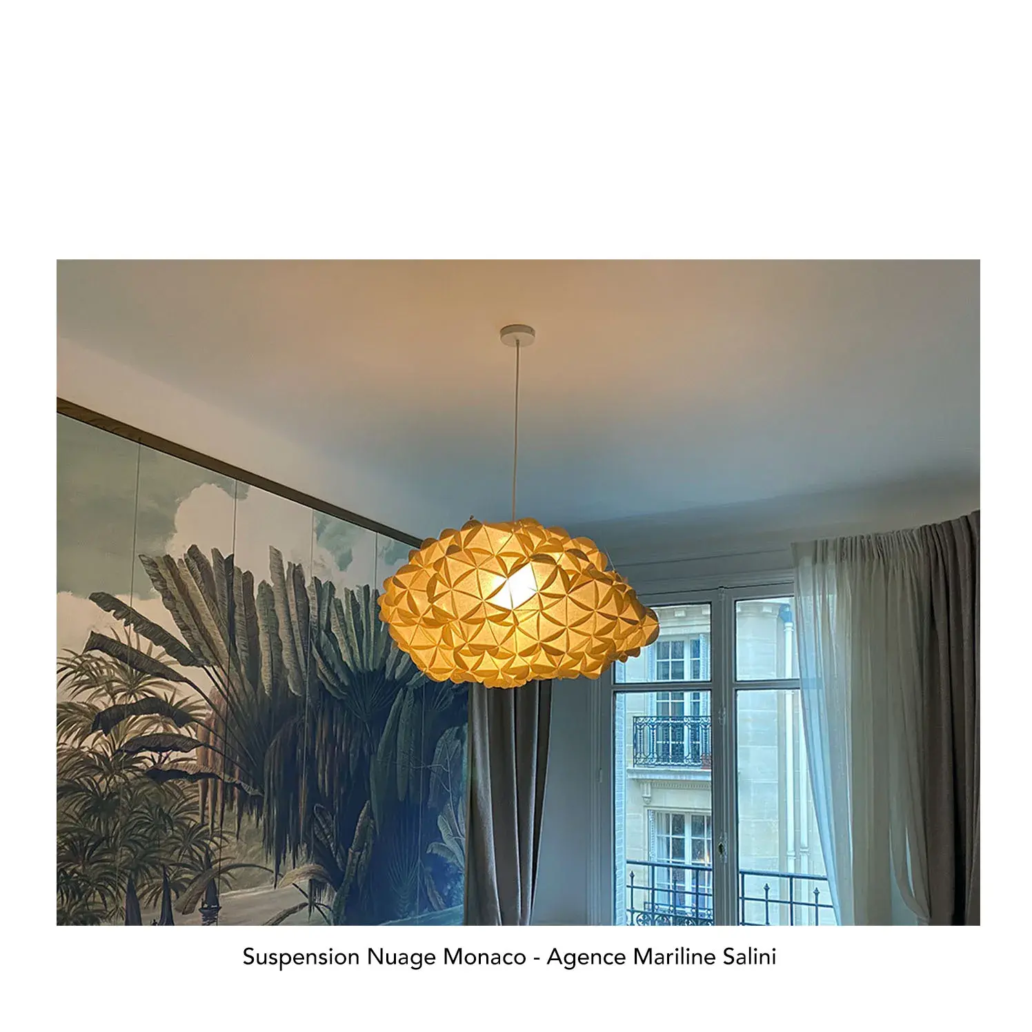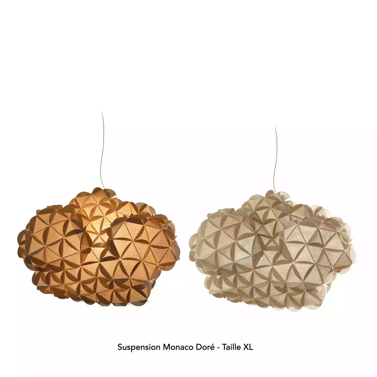 La suspension nuage Monaco , en lin tissé pailleté, offre un bon compromis entre puissance d’éclairage et ambiance chaleureuse. La matière Monaco est disponible en deux teintes, beige et doré.